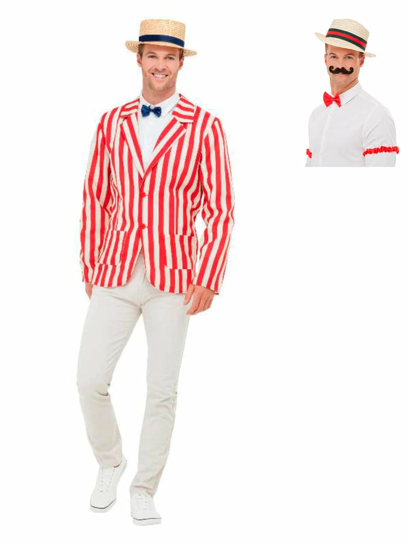 You’ll be singing to your next party in this 20’s Barber Shop Costume. This authentic looking costume comes complete with Red and cream striped jack, hat and bow tie. A great group fancy dress costume.