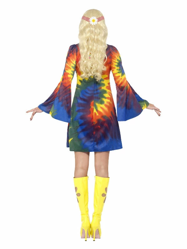Attend that 60s party in style with this colourful Tie-Dye Costume. This fancydress outfit includes a psychedelic style dress, perfect for ladies. Complete this groovy look with our selection of 60’s/70’s wigs, headwear and peace pendants. Groovy baby!