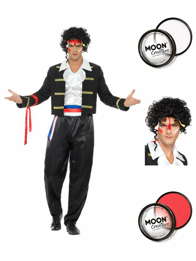 Get your power ballad ready in this New romantic costume! This 80’s costume comes with black jacket, trousers, shirt & headband.