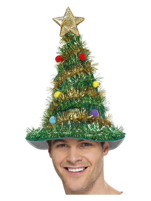 Folk will be rocking around you this Christmas when you wear this Christmas tree hat. Comes fully decorated with a star, tinsel and baubles.