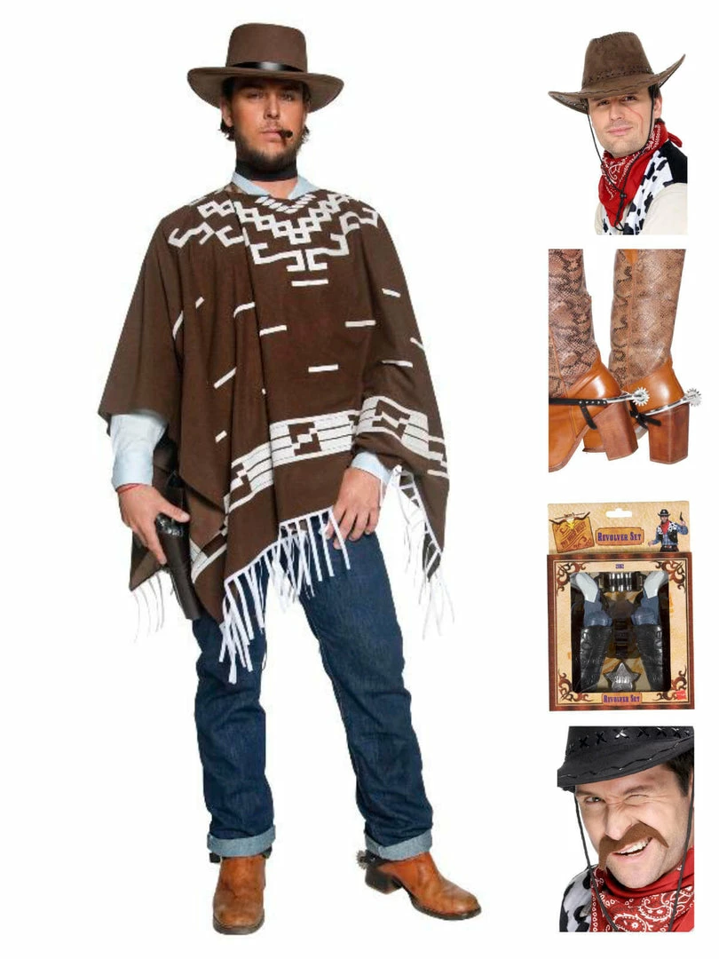 Look the real deal in this Authentic Western Wandering Gunman Costume. Complete with a poncho, vest with faux shirt and neck scarf. Horse not included!