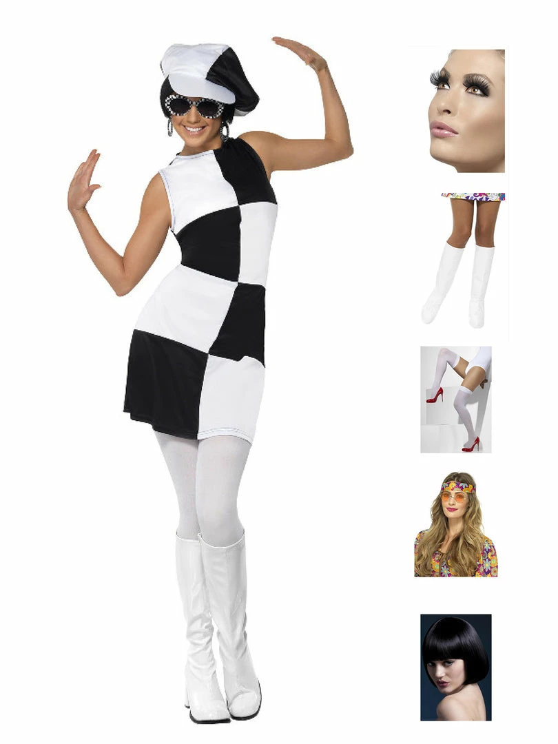 Rock the ‘Twiggy’ London look in this Mod chequered costume.