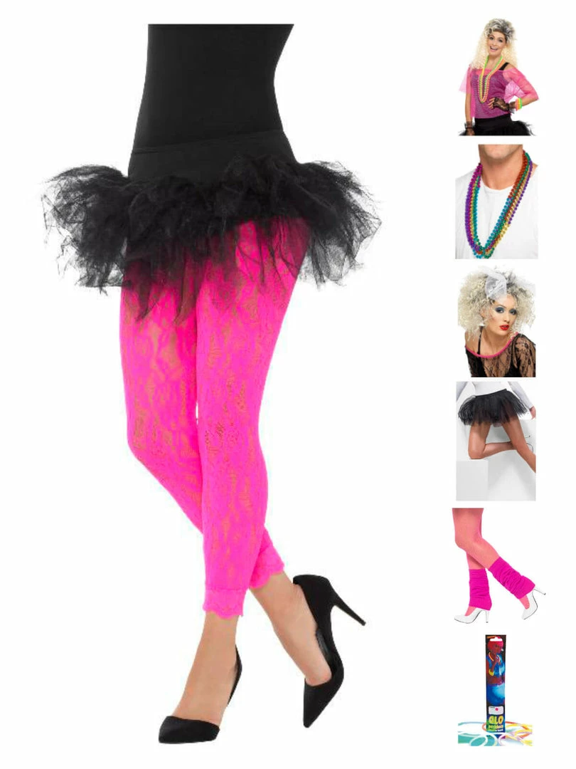 Be the scene queen in these neon pink lace leggings. Great for 80’s, neon parties, festivals and everyday wear!