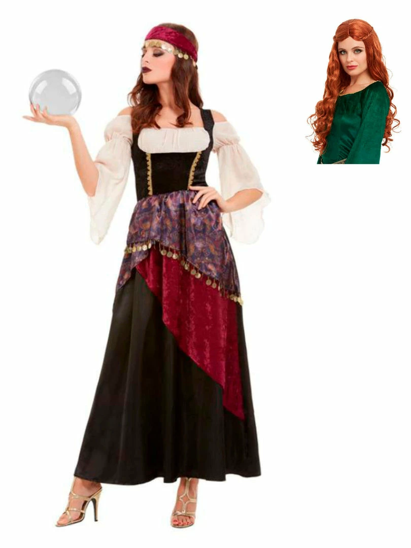 We predict a thrilling time in your near future as you choose to take the path of a fortune teller! This deluxe Fortune Teller fancy dress costume comes with a long dress and headband. Complete the look with some coloured contacts and a crystal ball!