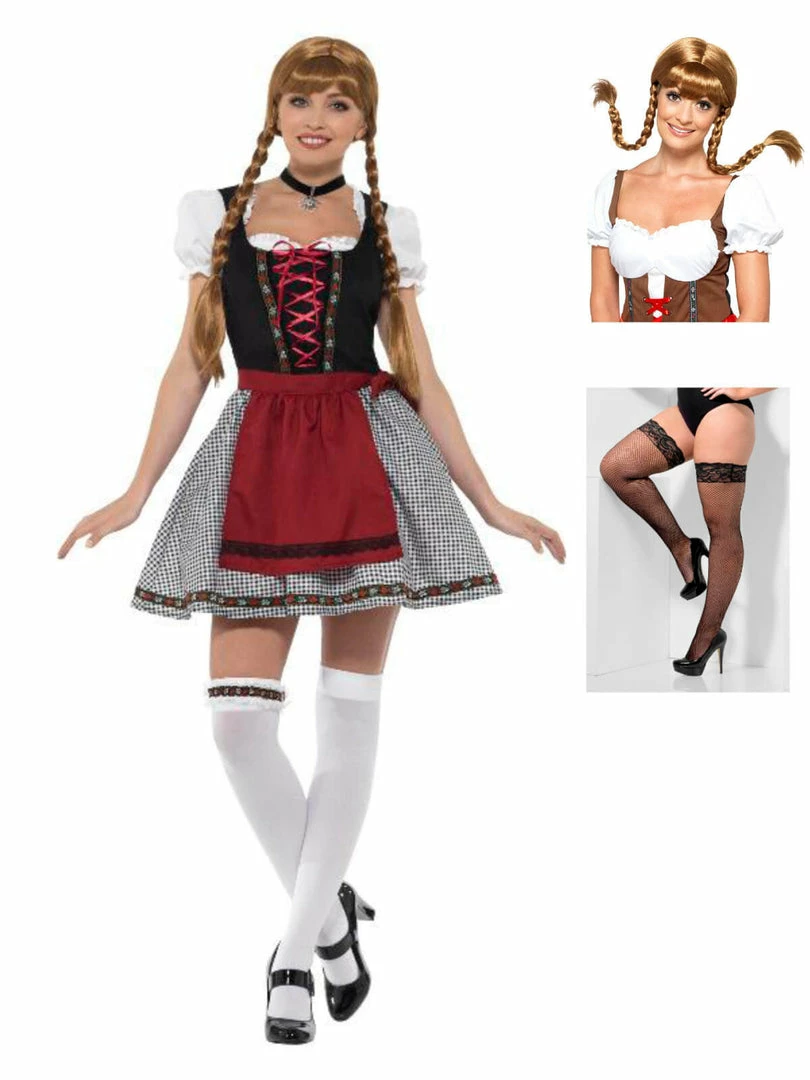 Get flirty in this Fraulein Bavarian costume. Costume comes with short dress, mock suede bodice, top & apron. Complete the look by choosing one of our many pairs of stockings.