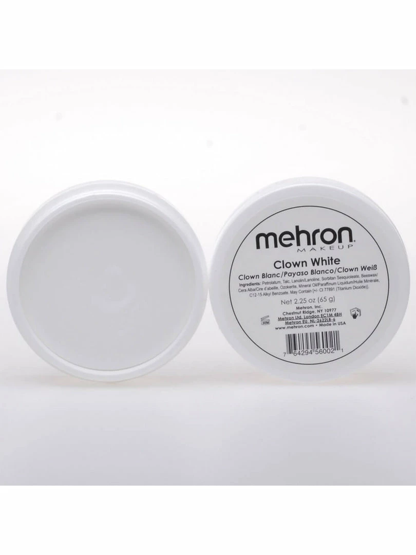 Mehron Clown White is the first choice of professional clowns and mimes. This super smooth, ultra-white cream covers efficiently without dryness or cracking, even under the most demanding performance conditions.