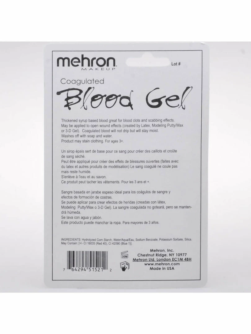 Mehron’s Coagulated blood is an extremely thick syrup based blood that will not drip. Excellent for blood clots, scrapes, and scabbing effects.