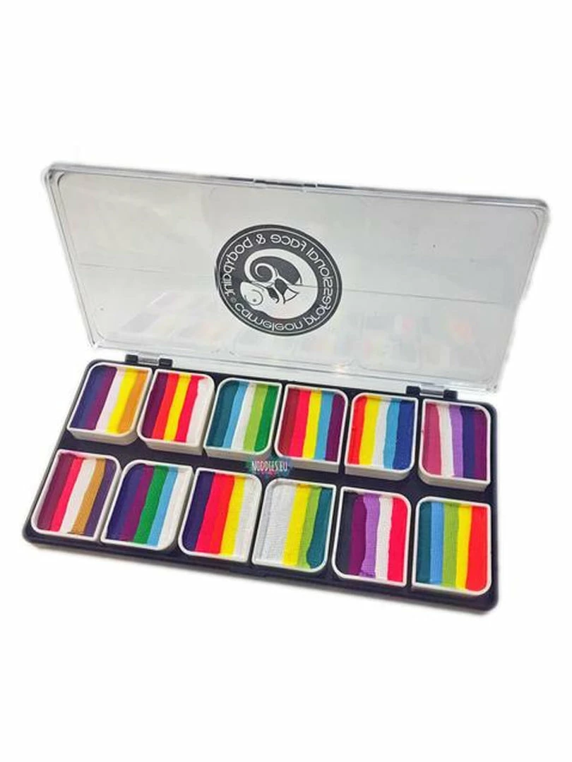This beautiful one stroke palette will fulfill your wildest painting dreams! With a mix of the brightest colours including UV, your face & body painting will be glowing!