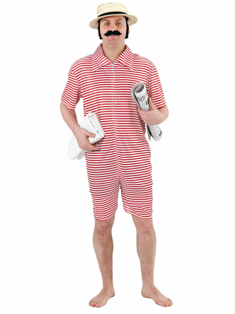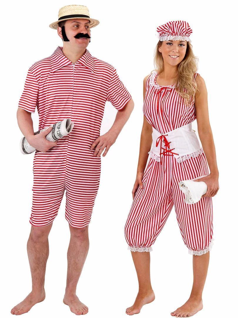 Take a splash in the 20’s in this cute beachy look. Complete with vest, pantaloon trousers, laced corset belt, and frilly hat you’ll be ready for your next 1920’s themed bash.