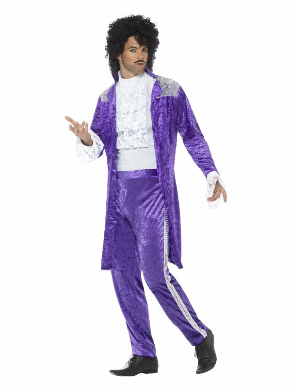 You’ll look the part in this 80’s Purple Musician Costume. An original alternitive to an 80’s look. Costume comes with purple velvet like jacket, Mock Shirt & Trousers. Complete the look with our 80’s purple musician kit and an inflatable guitar!