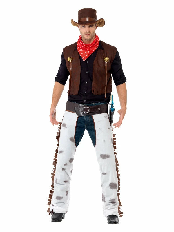 Be the king of the Wild West in this brown Cowboy Costume. This authentic looking costume includes a waistcoat, trousers, scarf and hat. Add a Wild West Gun Set to complete the look. You’ll have no trouble playing Cowboys and Indians in this attire. Yeehaw!.