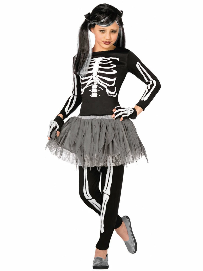 Look spooky and cute this Halloween with this fun sassy look! Complete with footless tights, top, gloves and tutu skirt you’ll look fresh out of the graveyard.