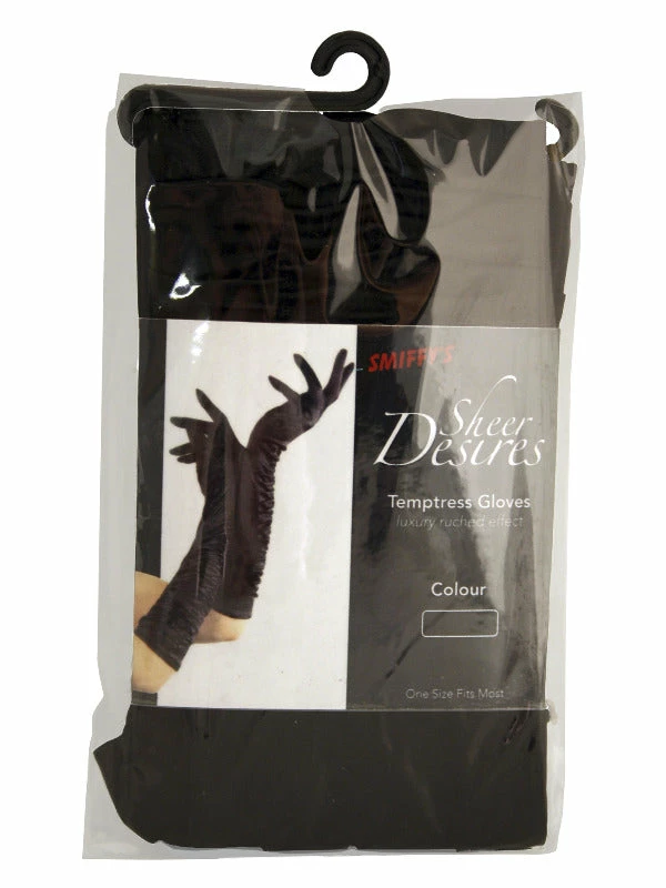 A pair of sexy Black Temptress Gloves are a great way to round off so many costumes. You could be a femme fatale, a gothic vampire or even Cruella de Vil — the choice is yours! These elbow-length Temptress Gloves in black have ruching details for a bit of extra oomph. They’re great for Halloween or costume parties, but they’d also make a major impact on stage as part of a burlesque outfit. For extra glam, add a cigarette holder and an oversized cocktail ring. Show off your inner femme fatale with these long, black Temptress Gloves.