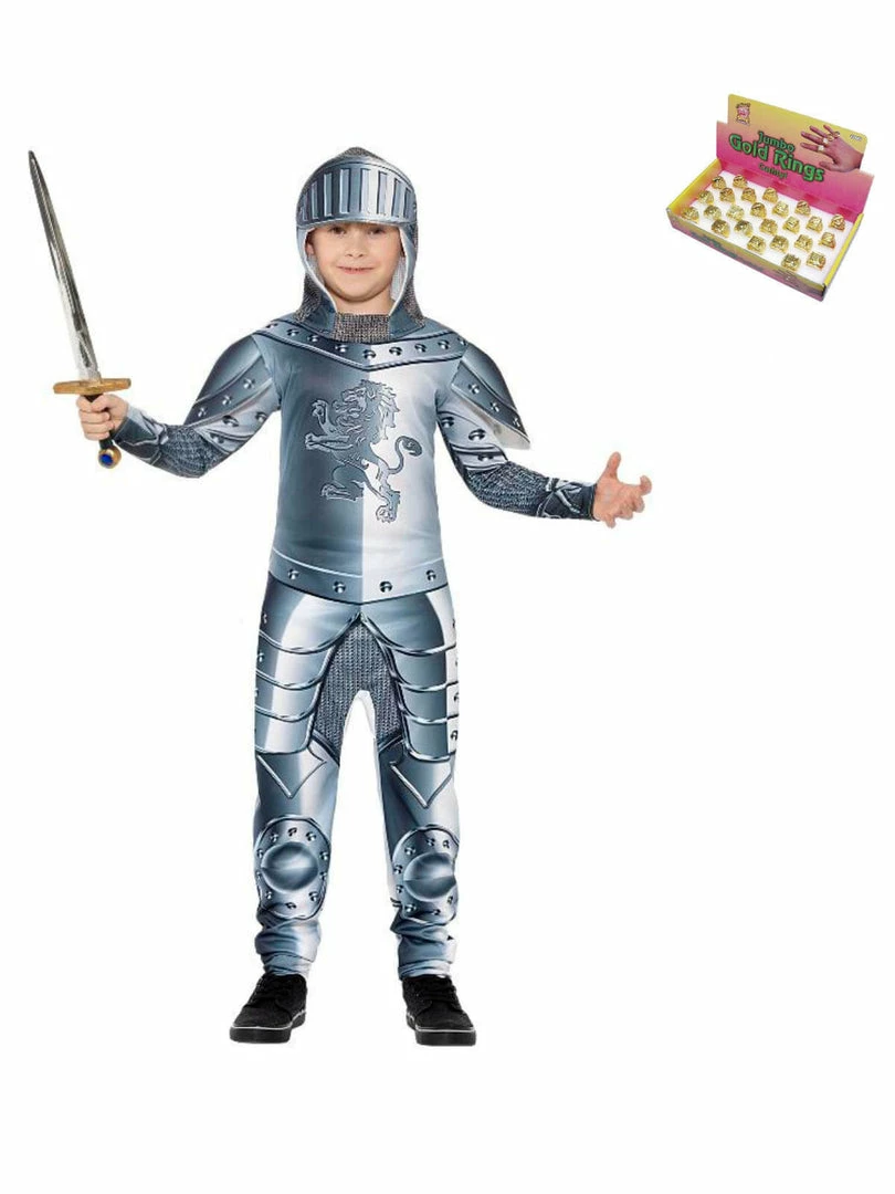 Boys will love dressing up as a knight for Halloween, World book day or any day they are looking to save their princess. This deluxe knight costume comes with a grey digital printed Jumpsuit & Headpiece.