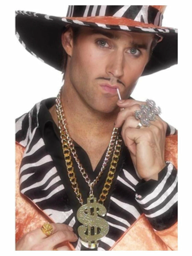 Rock this dollar sign medallion for any 90’s or Pimp party. This large dollar sign hangs from a thick golden chain.