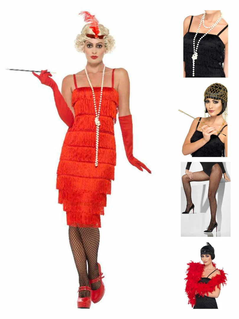Look like you’ve just stepped out of Gatsby’s mansion in this red flapper costume. Costume comes complete with dress, headbandand and gloves. Finish the look with tights, necklace & feather boa!