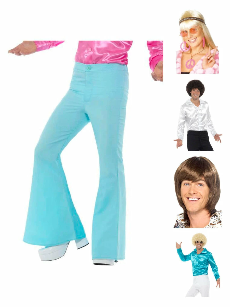 These mens blue flared trousers will be the making of any retro costume. Great for 60’s and 70’s looks.