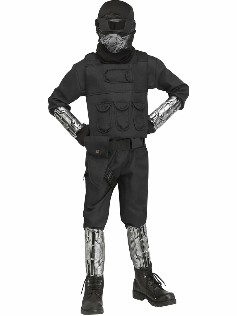Is your child ready to save the world? When they are dressed up in this Fortnite Costume, they can go into battle in full character. Gaming outfits are great fun for fancy dress parties – and this black Fortnite Costume is easily recognisable. There’s a lot in this costume pack — you’ll find a black jumpsuit, shin guards, wrist guards, a balaclava mask with breathing details and a hood.