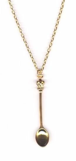 This gorgeous little gold spoon necklace is perfect for playing Alice in Wonderland! A tiny golden spoon on a gold chain.