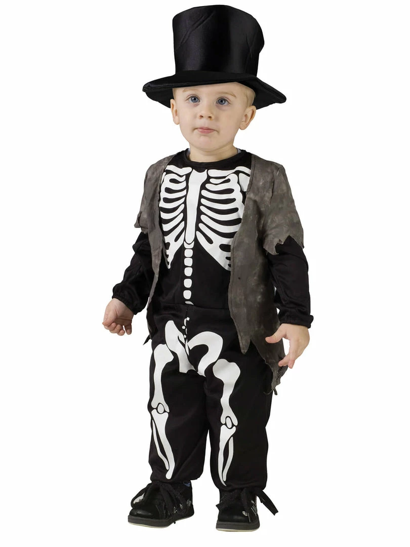 Your little one will look dapper in this Skeleton costume complete with top hat! Great for a day of the dead party or Halloween!