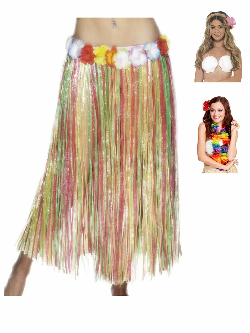 loha! Get ready for that Luau Party with the Hawaiian Hula Skirt. It’s multi-coloured, with flowers, comes with an elasticated Waist and measures 46cm/18 inches. Don’t forget your Hawaiian Lei!