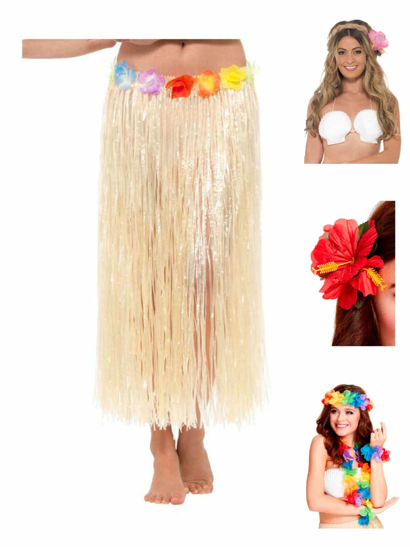 Luau in style in this Womens Hawaiian style hula skirt with flowers. With velcro fastening & adjustable waist band you’ll be dancing in no time!