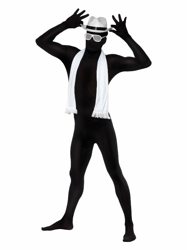 Hide in the shadows in this second skin morph suit. This comedy fancy dress costume includes an all-in-one suit with a concealed fly, under chin opening and bum bag.