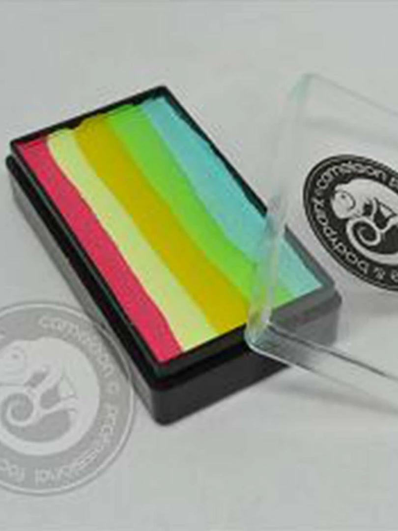 Cameleon Body Paint has the best coverage and brightest colours! This make-up can be applied with sponge or brush and is easily removed with soap and water. When applied the make-up will last all day without cracking or fading. Use a small amount of water to work with Cameleon using a sponge or brush. Cameleon is not water proof and can leave a residu after washing of. Some colors have strong pigments that wash of a bit harder than others. All our products are manufactured according the EEC and FDA regulations. All Baseline products have been approved by the EU & FDA institutions.