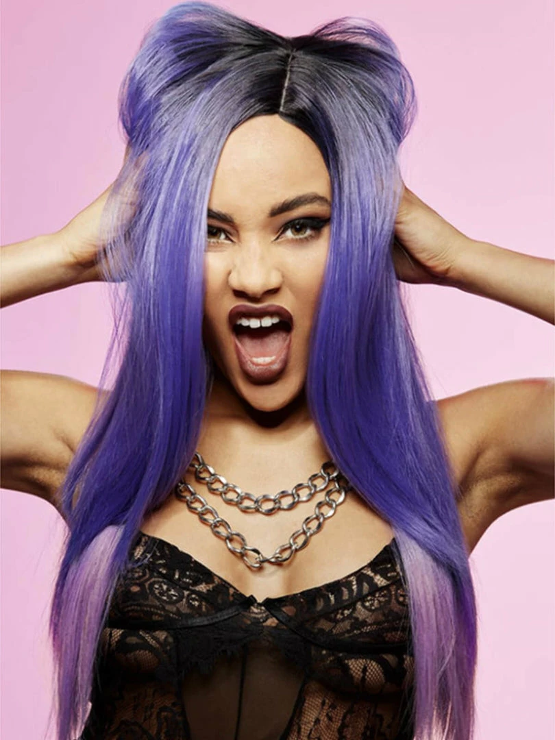 Manic Panic® Amethyst Ombre™ Super Vixen Wig Long Straight with Side Parting, Heat Styleable