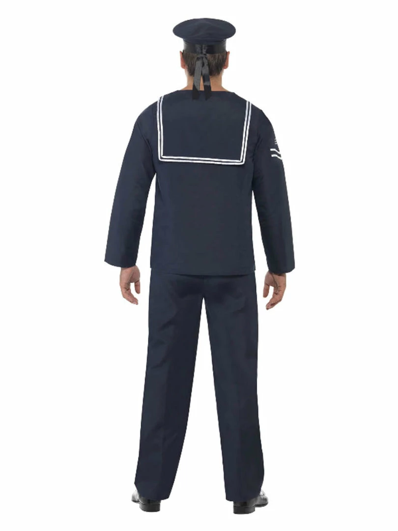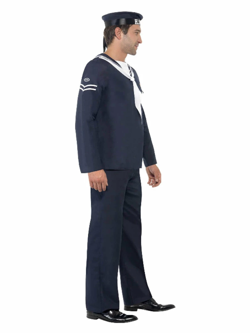 Sail the seas in this Naval seaman costume. Includes hat, top and trousers.