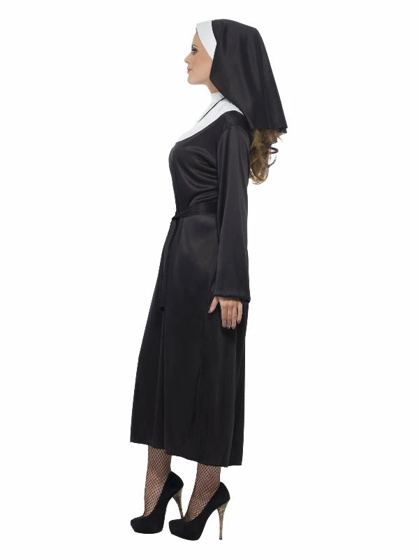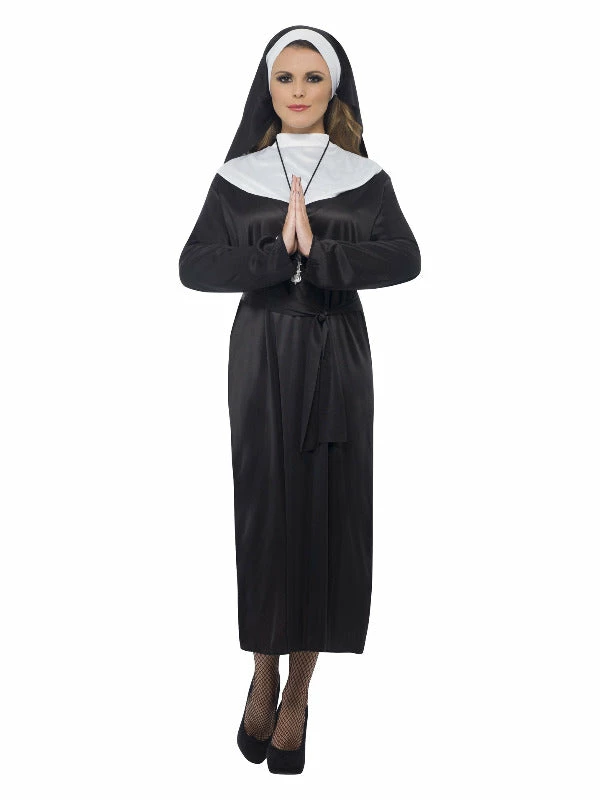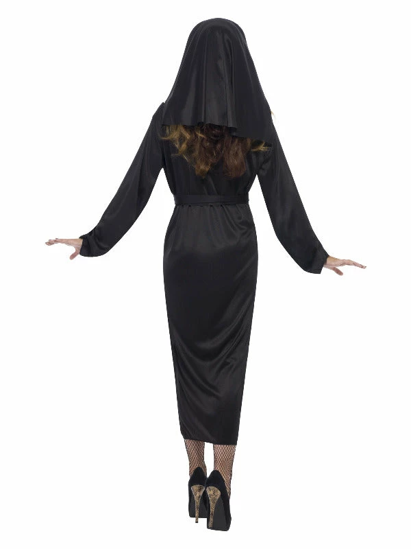 Be holier then thou in this Nun costume. Comes complete with Black dress, belt and headdress. Complete the look with a cross pendant and plenty of red wine!
