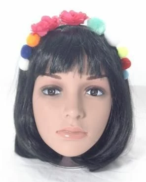 Cute festival headbands are all the rage! They don’t get much cuter then these pompom ones. They are screaming Freda Kahlo. Coloured pompoms & flowers. Choice of 3.