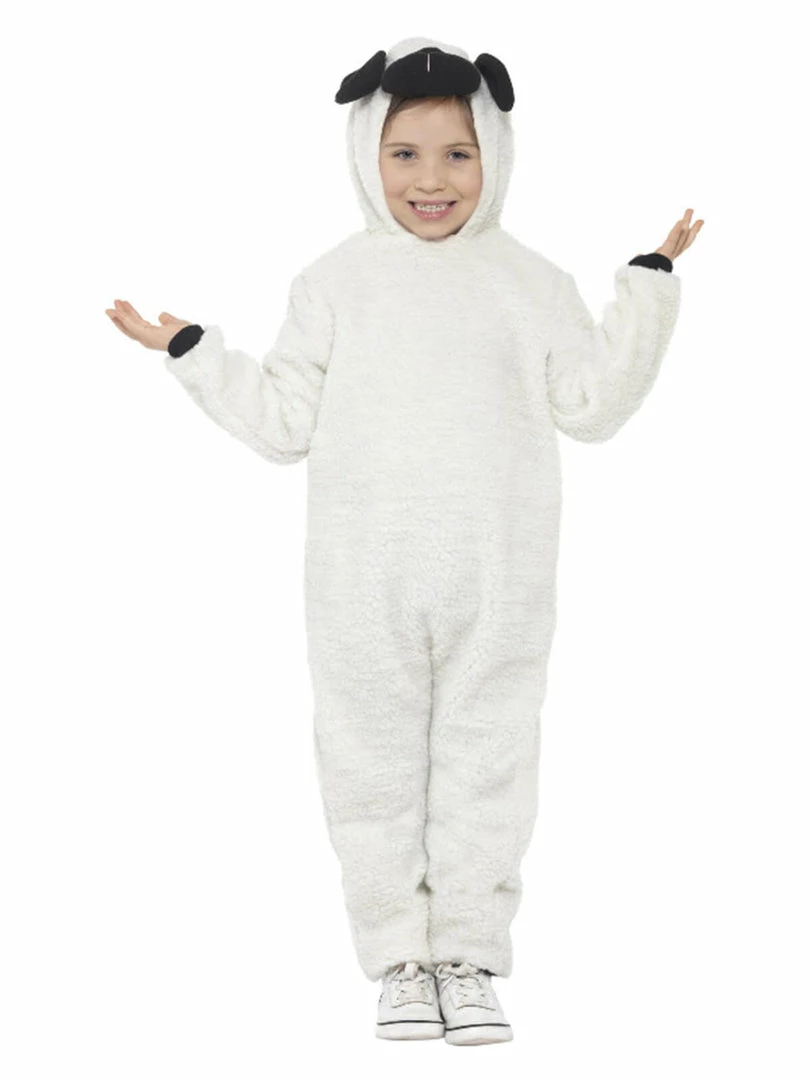 This adorable fluffy sheep costume is the perfect fancu dress for Easter, a Nativity play, Halloween or just for fun!
