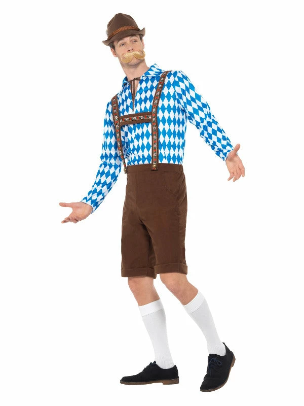 Be the jolly mountain man in this Bavarian Beer Man costume. With brown lederhosen and a blue & white diamond shirt you’ll be Oktoberfest ready in no time! Accessorise with a hat to complete the look!. PROST!