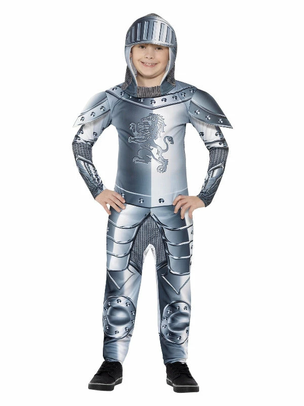 Boys will love dressing up as a knight for Halloween, World book day or any day they are looking to save their princess. This deluxe knight costume comes with a grey digital printed Jumpsuit & Headpiece.
