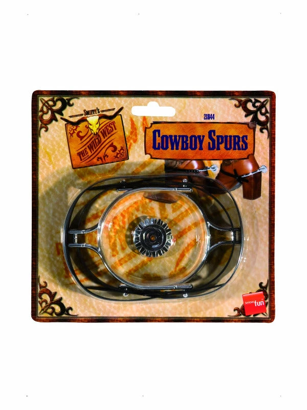 Yeehaw! Complete your cowboy look with these Silver Spurs! They fit comfortably around the shoe with black straps.You’ll look the real deal!