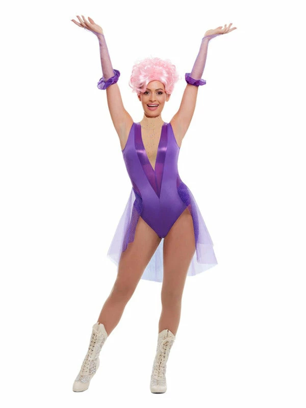 Jump through the skies in this purple Trapeze Artist Costume. Comes complete with Bodysuit & Gloves. A great costume for a circus themed party or even festival wear!