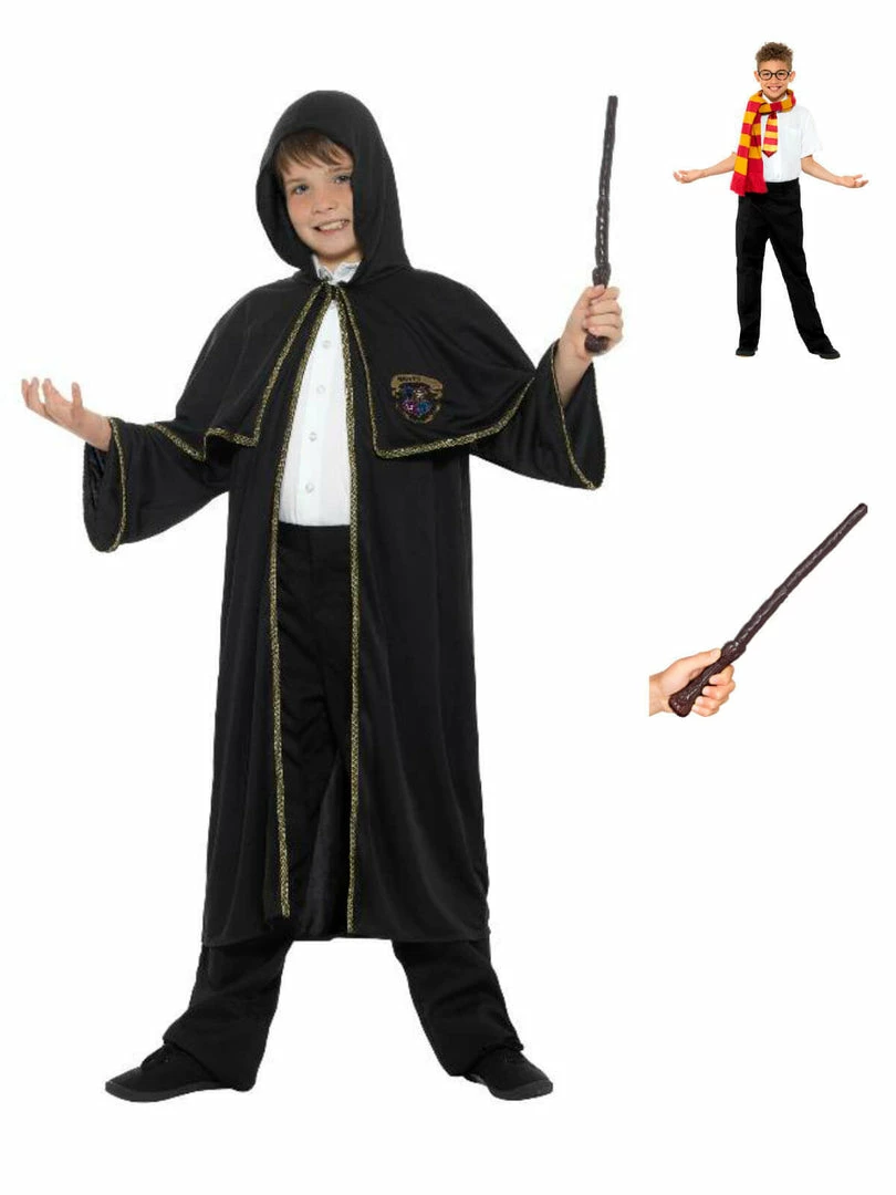 For all those little wizards, this black wizard cloak with hood will have you looking like magic! A great costume for cosplay.